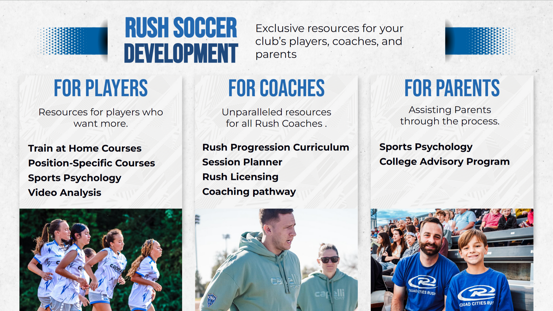 Nevada Rush's player-centered approach, backed with a national-level program and elite-level coaching, provides a positive playing and learning environment that fosters long-term player development and personal growth. We strive to provide our players with the highest quality soccer training and development in America. Rush provides top-quality opportunities for players at all levels. The club employs talented full-time and part-time coaching staff with vast experience of the youth soccer across the US and the world. The quality of coaching is a major factor in the playing success of the club.